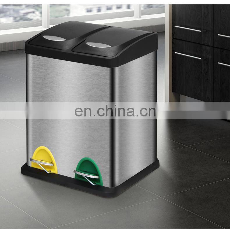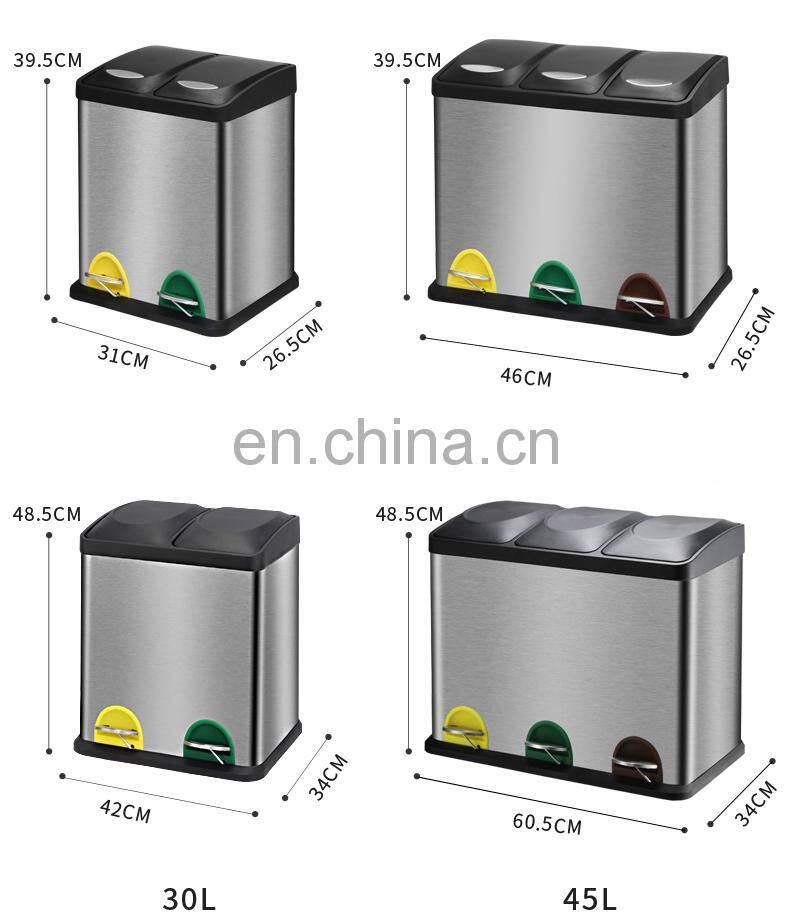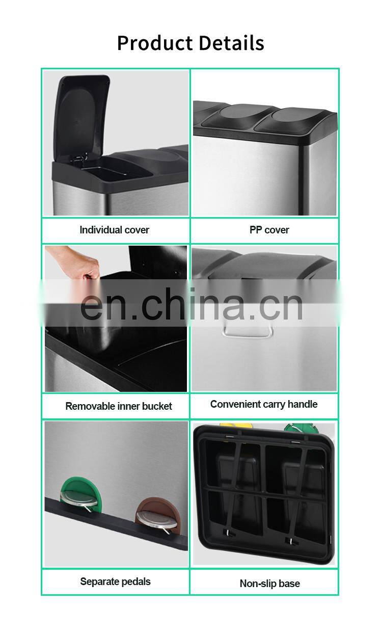 Two and Three Compartments Indoor Kitchen Recycling Pedal Bin Household Recycling Bin Stainless Steel Recycle Bin