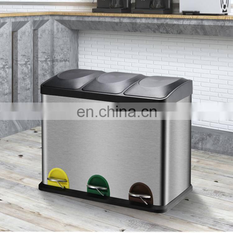 45L 3-compartment pedal bin | Stainless steel 410 + PP | 60.5x34x48.5Hcm | white box | 1 | 62*35.5*50.5 | 0.111 | 500 | |||||||
