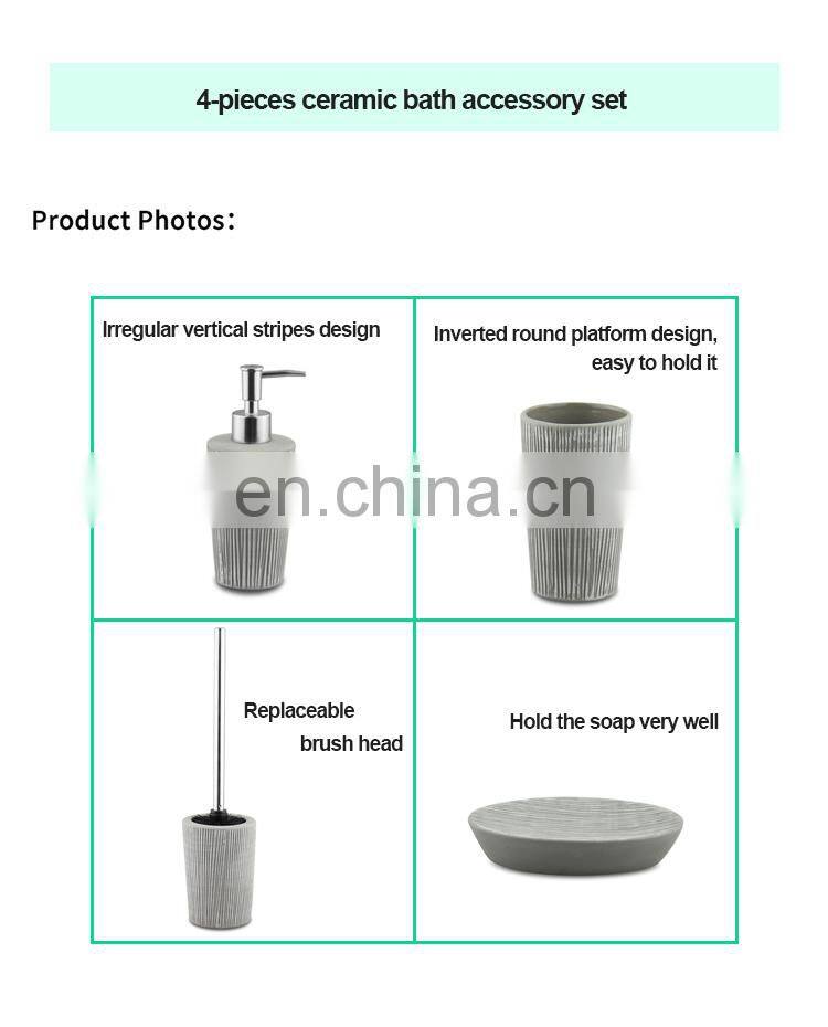 Vertical Stripes Relief Design 4-piece Ceramic Bath Accessory Hardware Designer Bathroom Set
