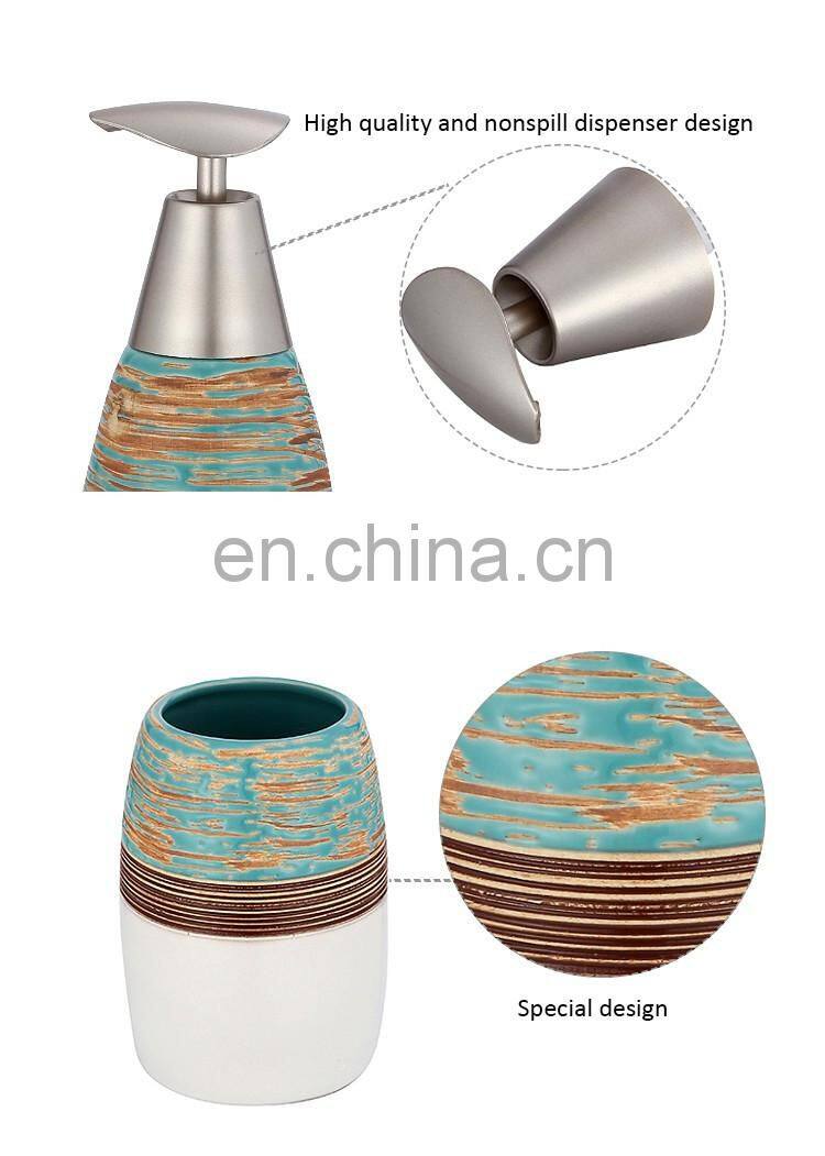 Sexy glazed ceramic pretty Liquid soap dispenser hotel ceramic bath set