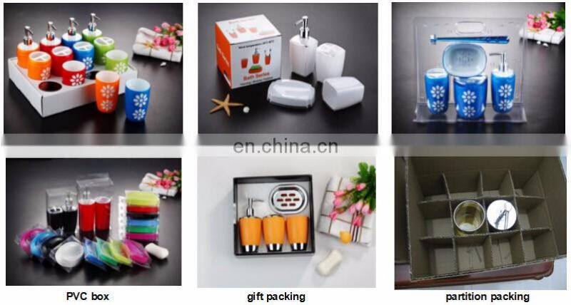 Double Color White and Red Complete Plastic Bathroom Accessories Decoration for Bathroom 5 Pcs Set