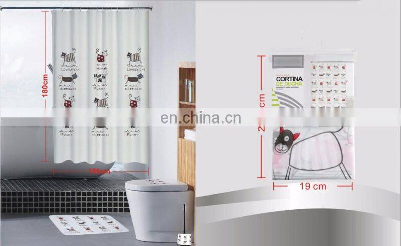 Manufacturers Beautiful cute cat Plastic Bathroom Set include mat Shower curtain Toilet seat