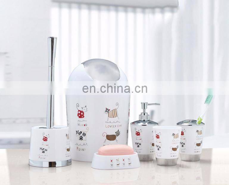 Manufacturers Cute Cat Plastic Bathroom Set Include Mat Shower Curtain Toilet Seat