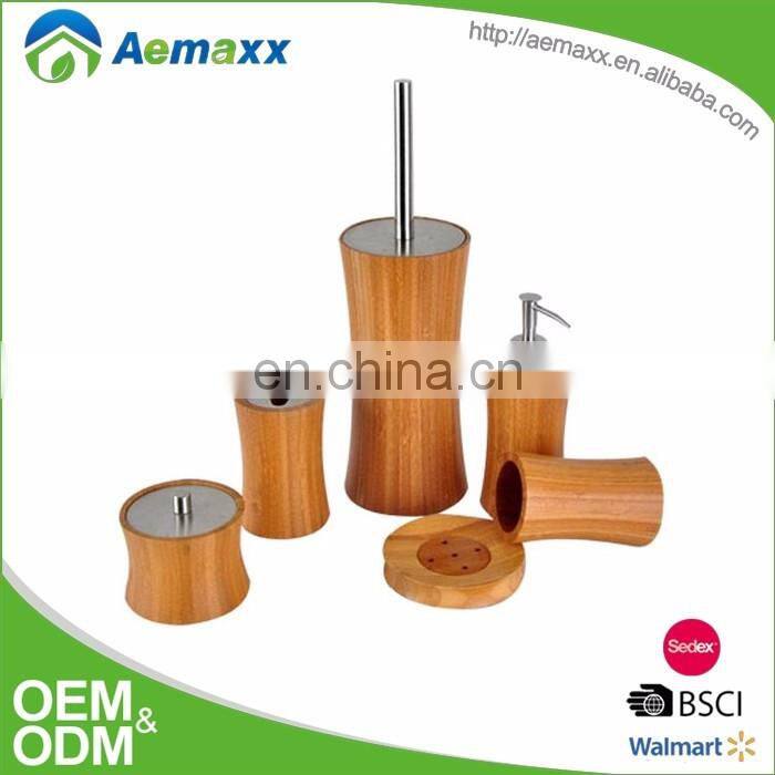 Bamboo Series 5pcs Bathroom Decoration Sets With Toilet Brush Dispenser