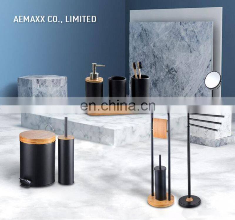 4-Piece Natural Bamboo White and Black Ceramic Bathroom Accessories