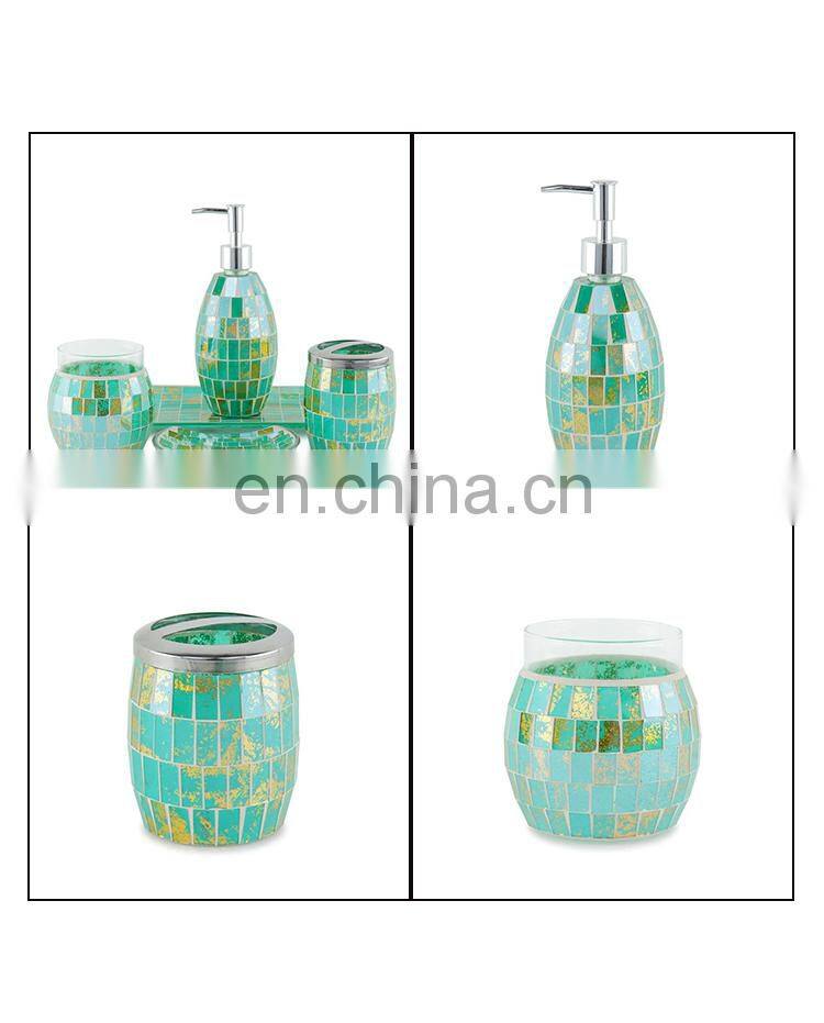 2021 Fashion Designed Bathroom Set Glass Soap Dispenser Green Glass Bathroom Accessories Sets