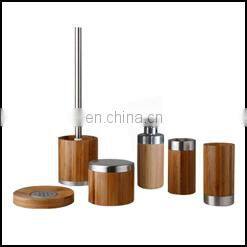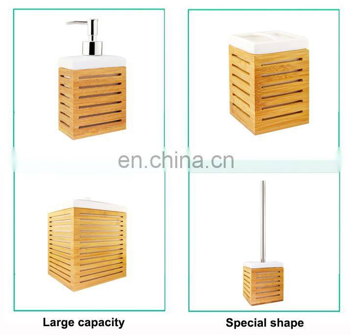 Stock Bathroom Accessories Bamboo Bathroom Soap Dispenser Set Bathroom Toothbrush Holder Set