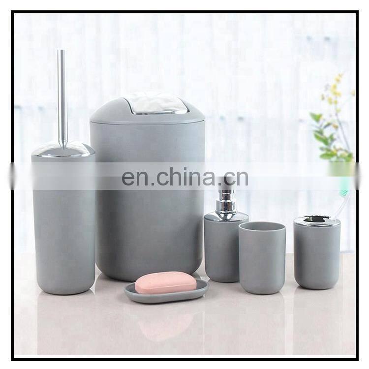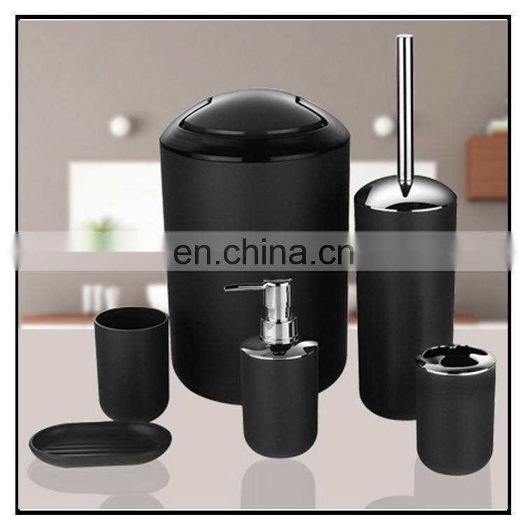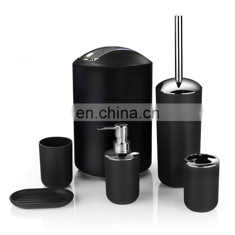 Best Selling Home Black White Grey Brown Bathroom Accessories 6-piece Plastic Bathroom Sets for Bathroom Use