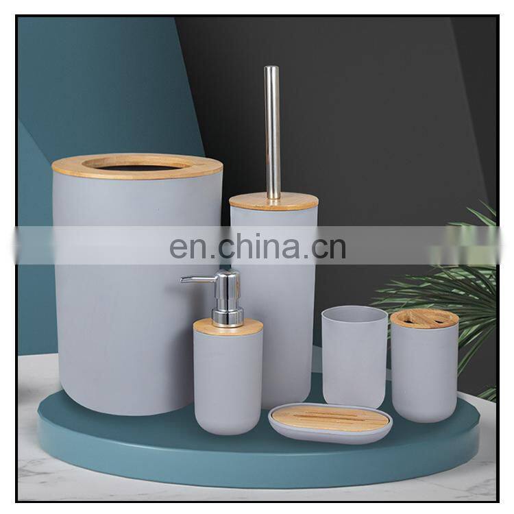 2021 Modern Design Hot Selling Household Multi-color Bathroom Accessories Six-Pieces Bamboo Lid Plastic Bathroom Sets