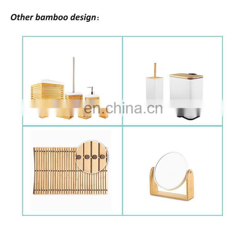 Latest Model Eco-friendly Household White Bathroom Accessories Six-Pieces Bamboo and Plastic Hotel Bathroom Accessories Sets