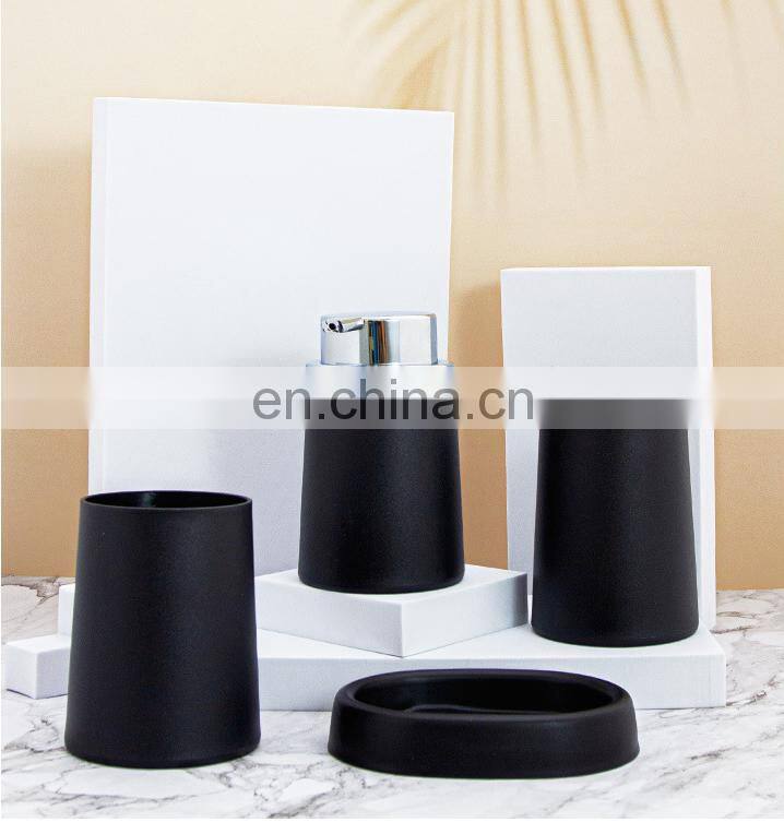 Luxury Design High Quality Powder Coating Ceramic Bathroom Accessories Household Hotel Three-piece Soap Dispenser Bathroom Set