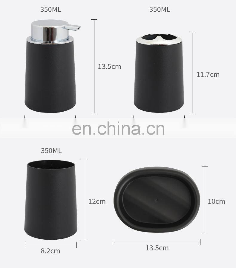 Best Selling Home Black White Bathroom Accessories 4-piece Plastic Bathroom Hardware Set Big Pump Design Soap Dispenser