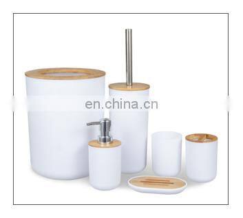 7 pcs high quality white modern anddurable plastic &bamboo bathroom accessory