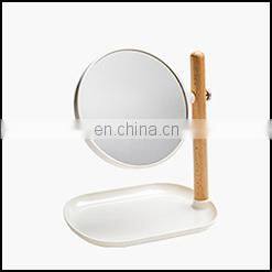 2021 New Small Size Personal Standing Mirror Modern Makeup Bamboo Mirror With Storage Compartment