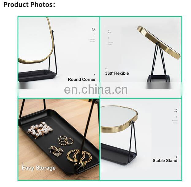 Latest Design Hot Selling Makeup Mirror Black Frame Standup Mirror Storage Metal Mirror for Makeup
