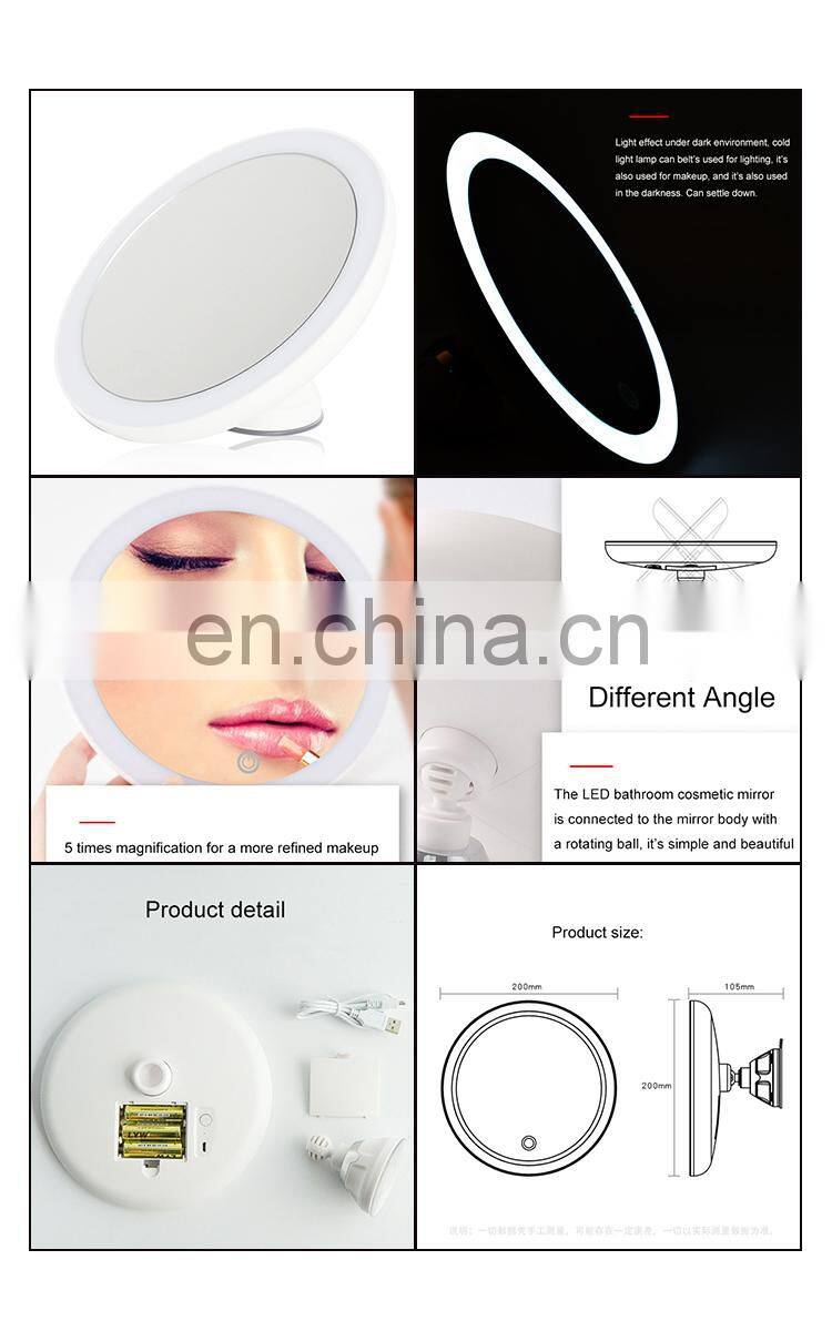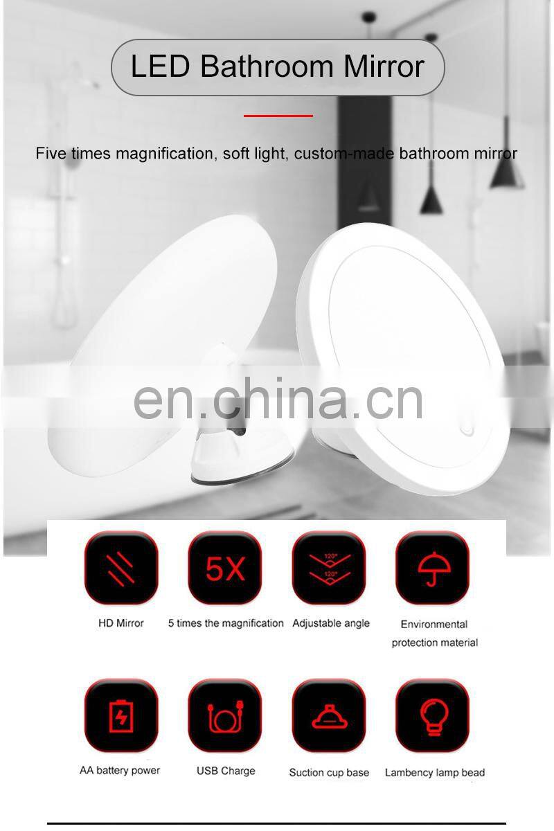 2 in 1 Usb Charge Round LED Light Makeup Mirror Wall Mounted 5x Magnifying Mirror Suction Bathroom Mirror