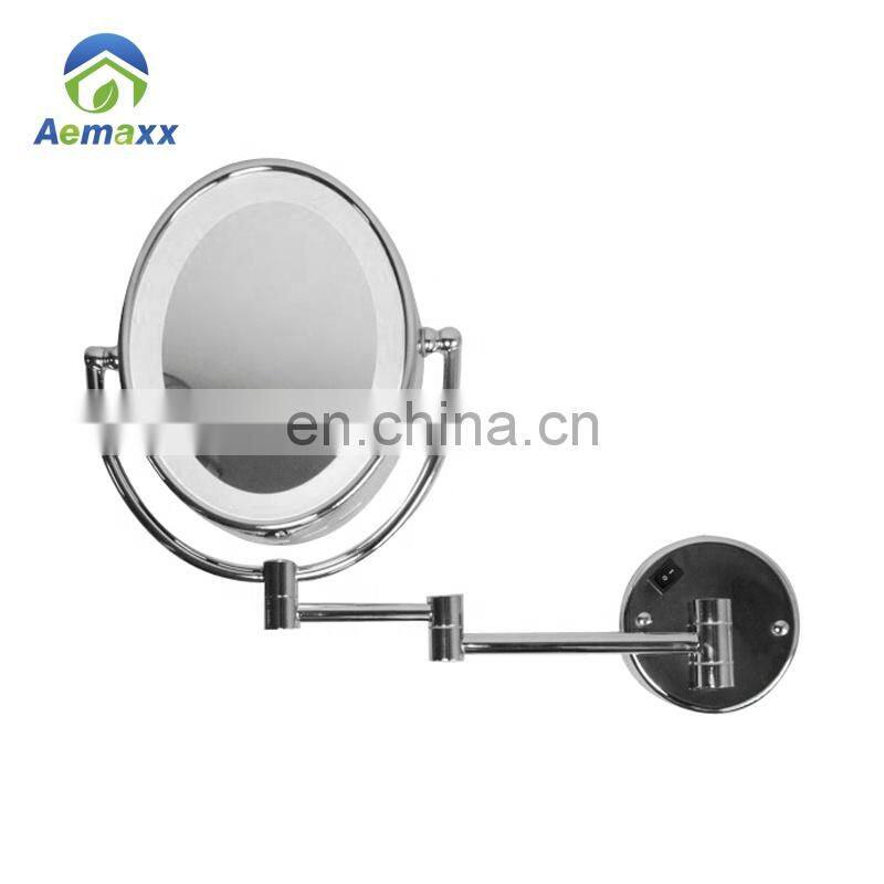 360 Degree Rotate Stainless Steel Frame Wall Mirror 5X Magnifying LED Wall Mirror With LED Lights