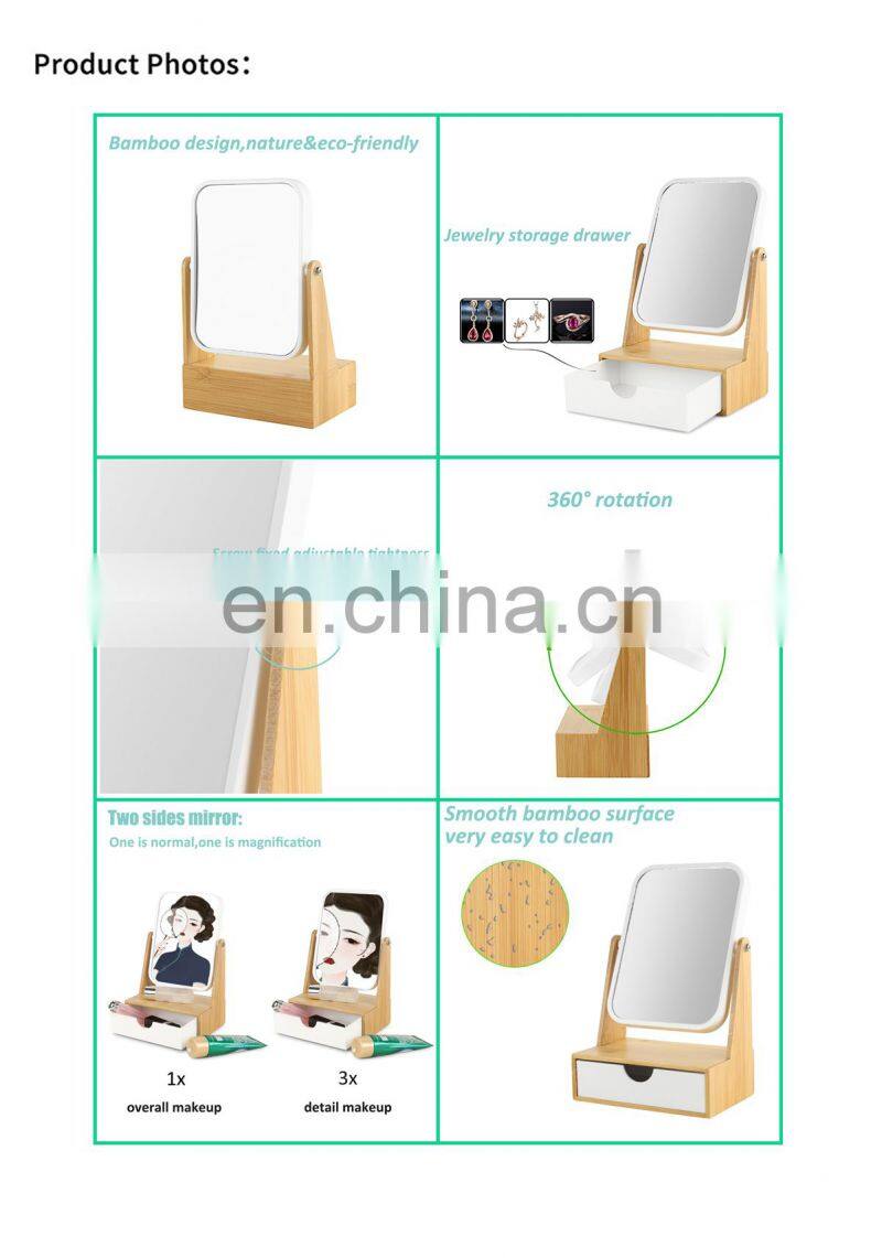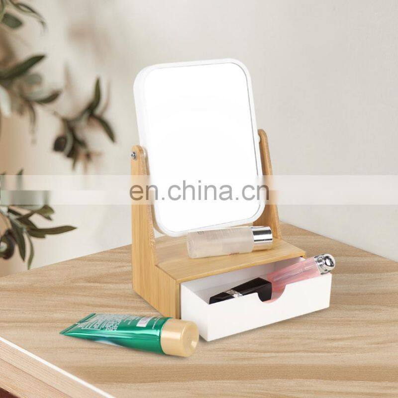 Best selling bamboo make up mirror with storage drawer table mirror cosmetic fashion design makeup mirror