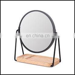 2021 New Small Size Personal Standing Mirror Modern Makeup Bamboo Mirror With Storage Compartment