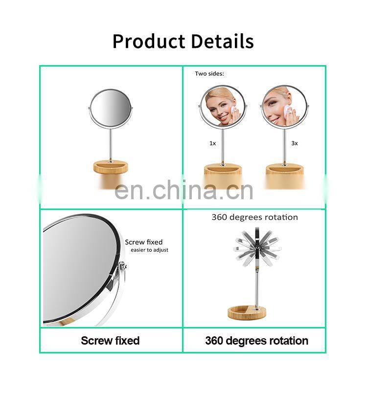 Home > Products > Mirror > Popular Female Household Bamboo Base Double Sided Magnifying Round Bedroom Makeup Mirror Cosmetic Beauty Makeup Mirror