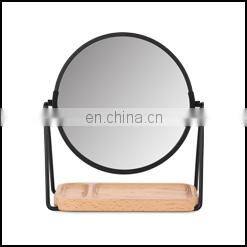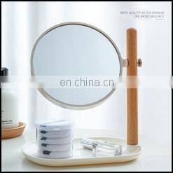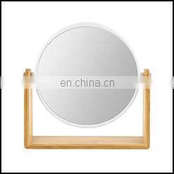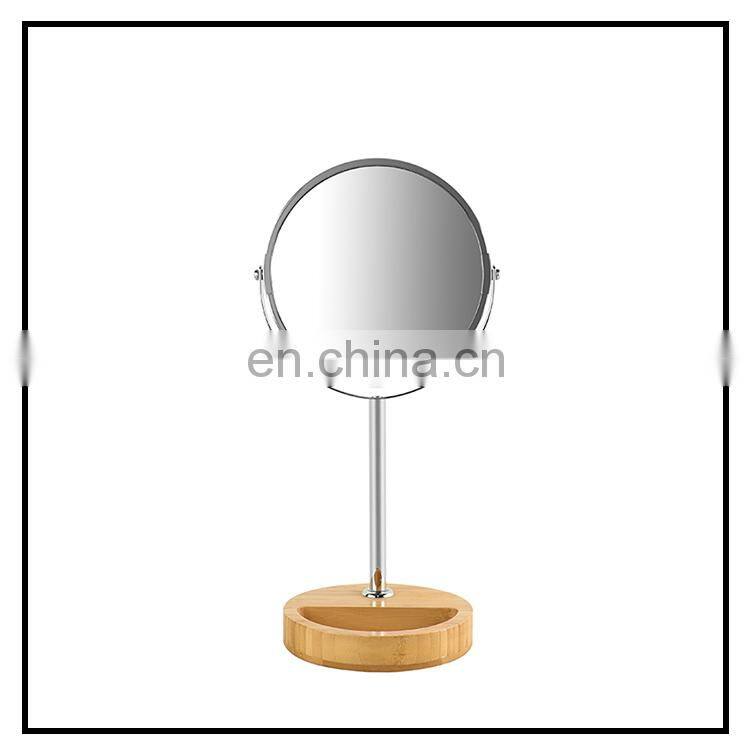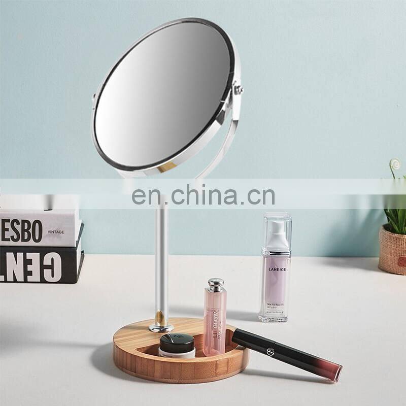 Popular female household bamboo base double sided magnifying round bedroom makeup mirror
