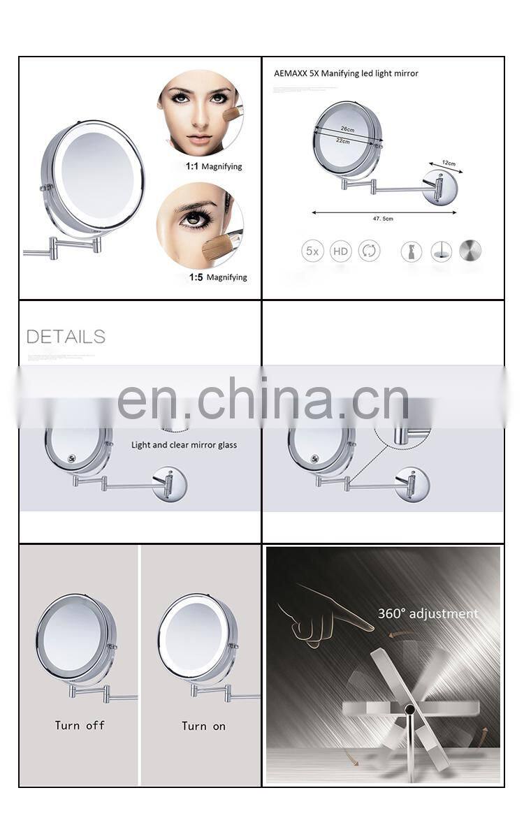 2021 New Item 2-Face Round 5x Magnifying Wall Mount Bathroom Makeup Led Light Mirror