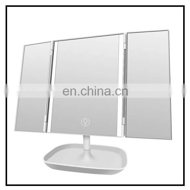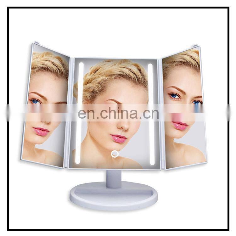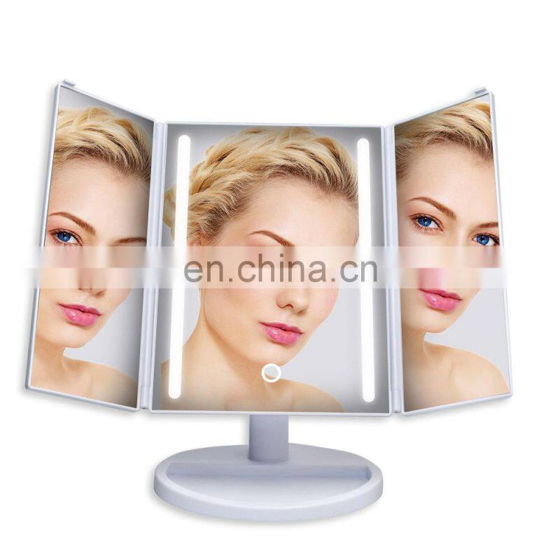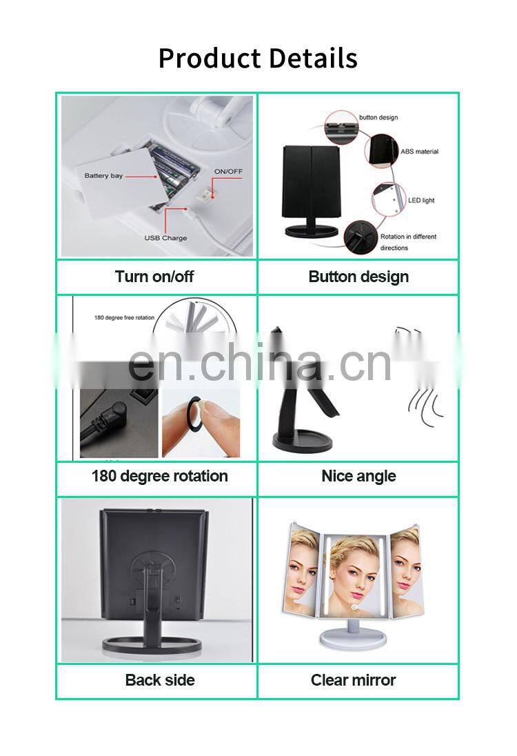 Hot selling black chargeable and portable led glass lighted makeup mirror trifold desktop magnifying makeup mirror