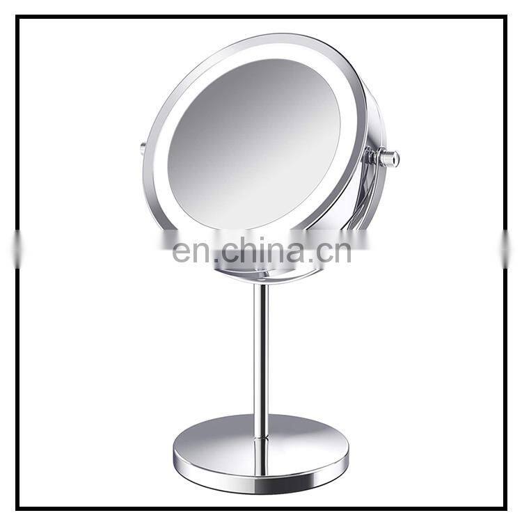 2021 Stainless Steel Decorative 360 Degree Rotation Wall Mirror 5X Magnifying Round Household LED Wall Mirror With LED Lights