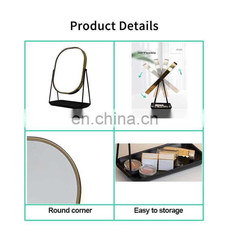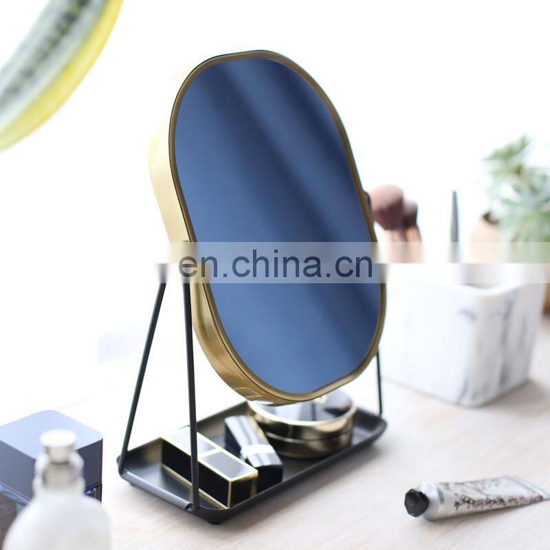 New Design Double Sided Free Stand Table Makeup Mirror With Storage Plate