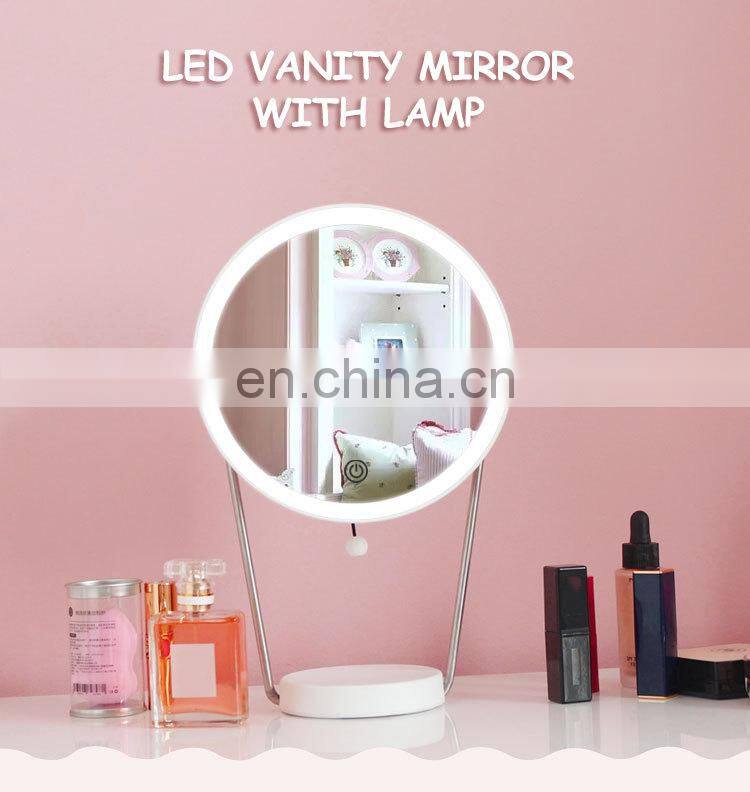 Home Round Vanity Mirror High Quality Beauty Desktop Makeup Mirror Decoration Iron Powder Coating Makeup Mirror With Storage