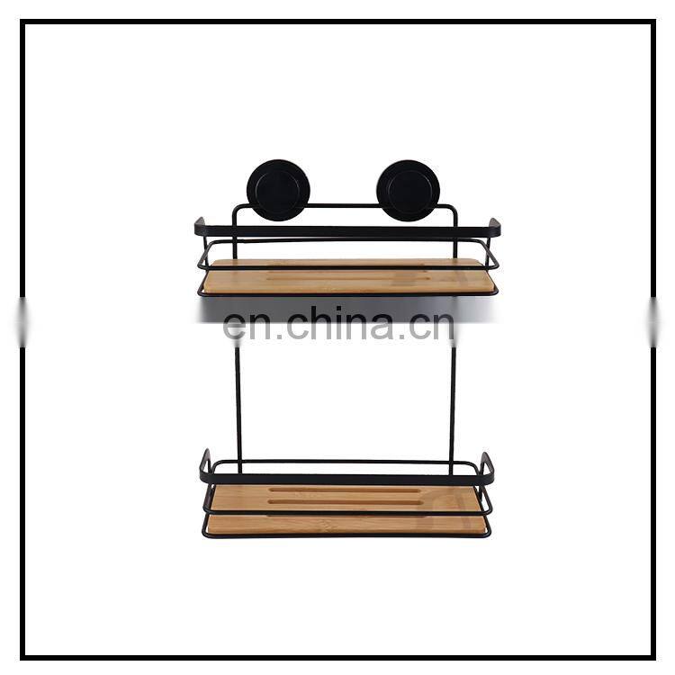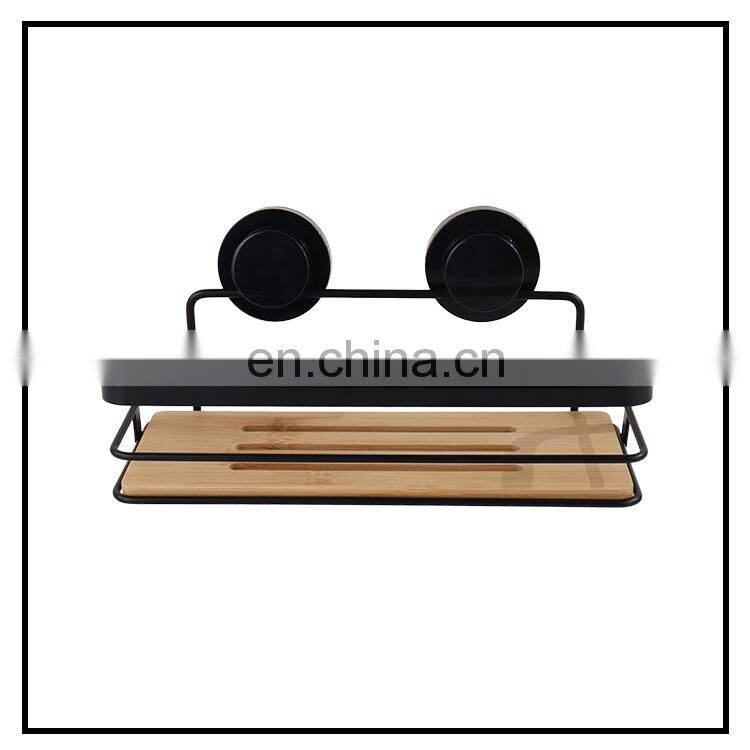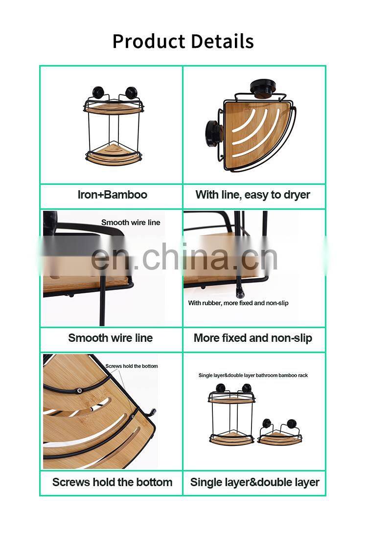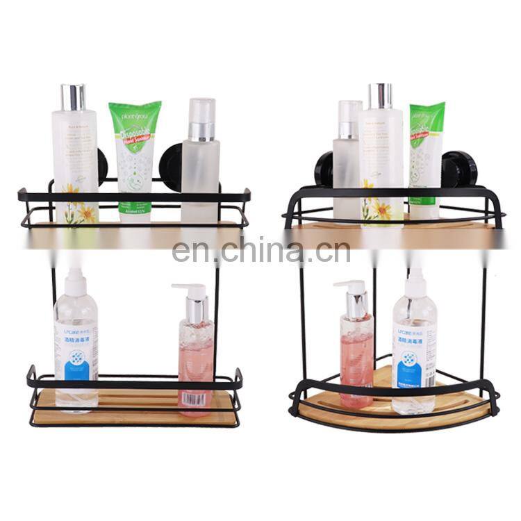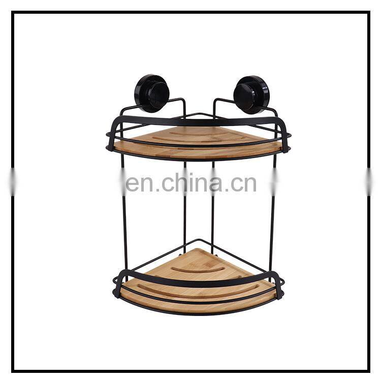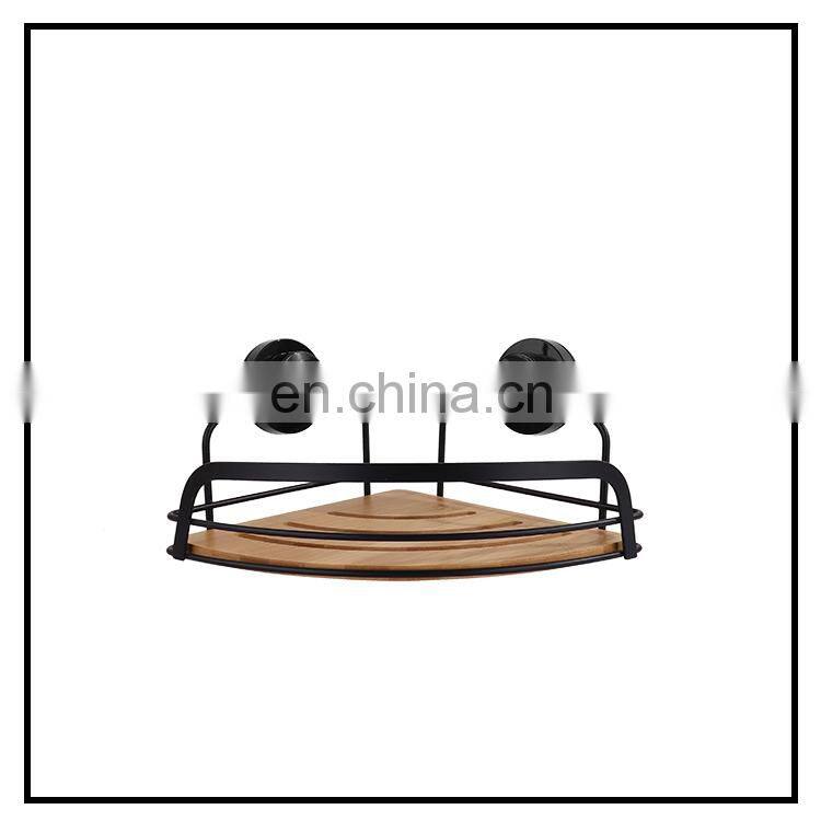 Steel Wooden Shelves Corner Wall Mounted Rack Bathroom Storage Shelf Shower Caddy With Suction Cup