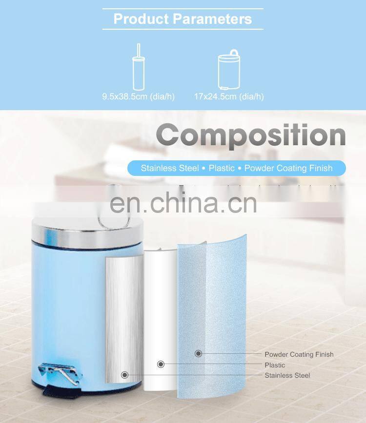 Customized Bathroom Set Powder Coating Bin Toilet Brush Hotel Trash Bin