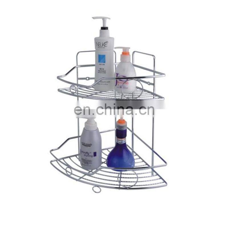 Fashionable Shower Dual Tier Rack 2L Chrome Metal Bath Shelves for Bathroom