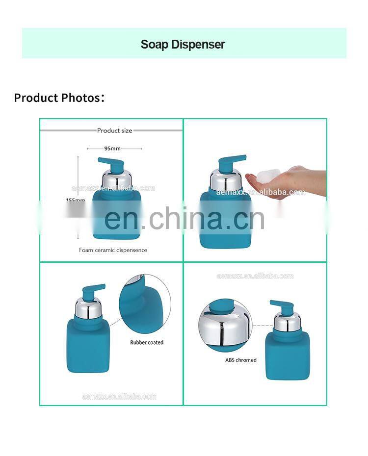High Quality Rubber Coated Blue Ceramic Foam Pump Lotion Soap Dispenser
