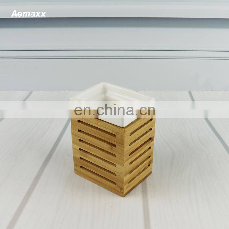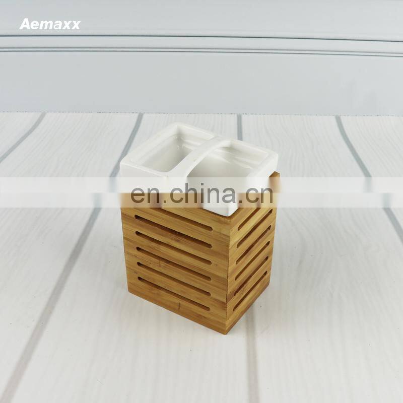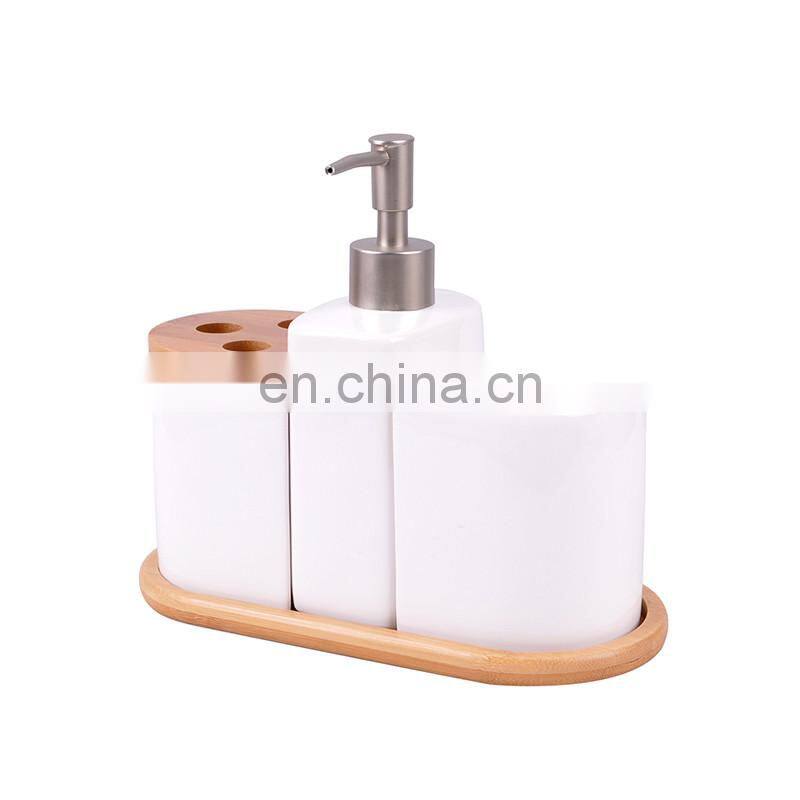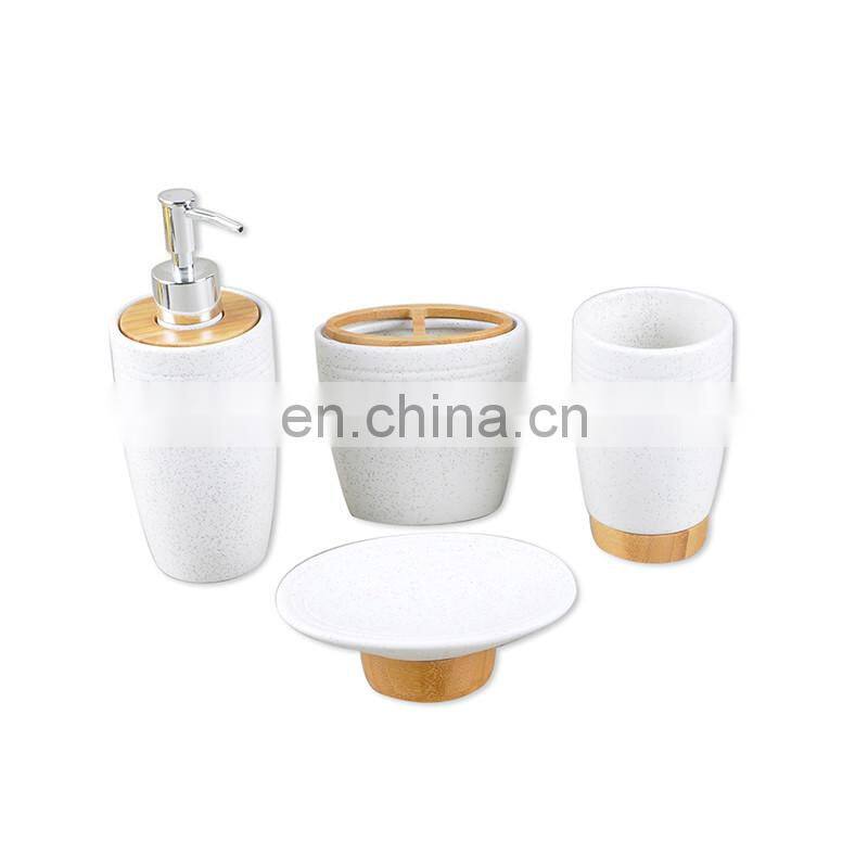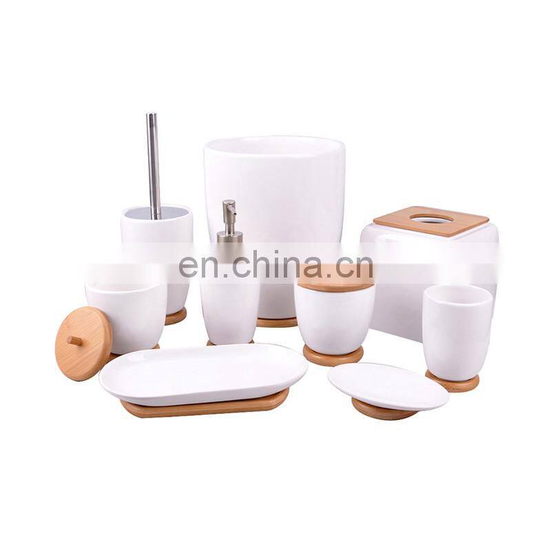 New Gadget Wholesale Simply Bath Accessory Ceramic Bamboo Bathroom Set