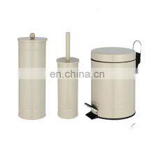 Home Decor Embossed 3 Pieces Stainless Steel Toilet Brush Holder Paper Holder Waste Bin Bathroom Accessory Set