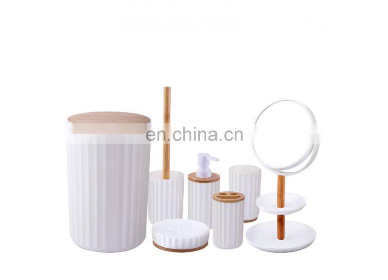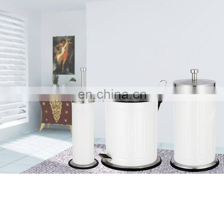 Household White Powder Coating Metal Bath Set With Dust Bin and Tissue Holder Embossed Line Bathroom Accessory Set