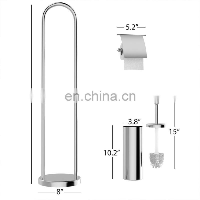 Two Function Waterproof Telescopic Core ar Stainless Steel Standing Seat Bathroom Toilet Paper Holder With Toilet Brush Holder