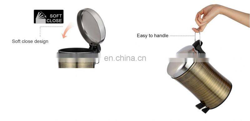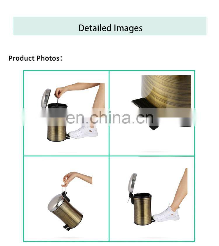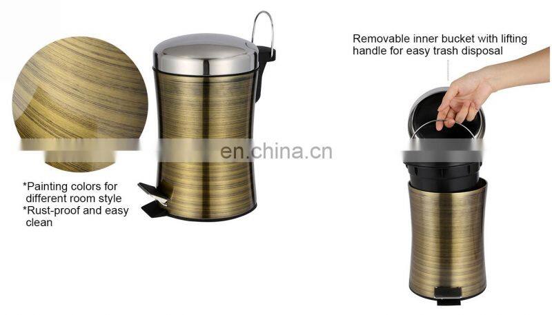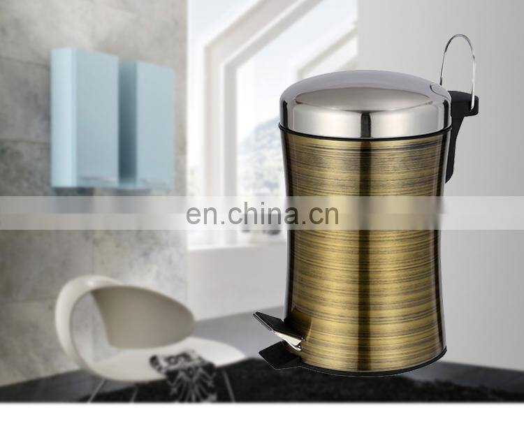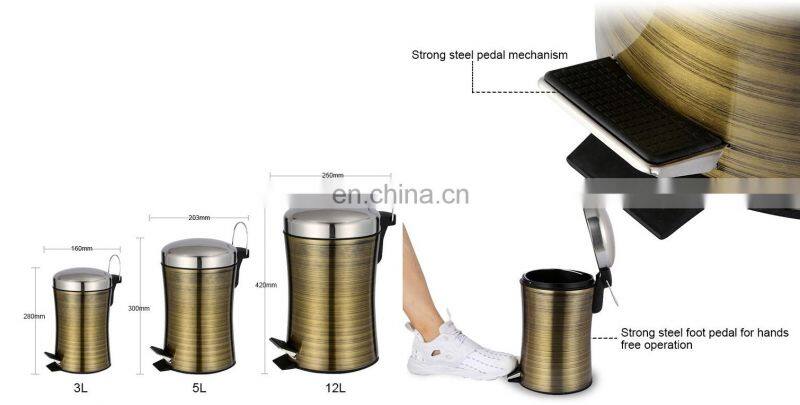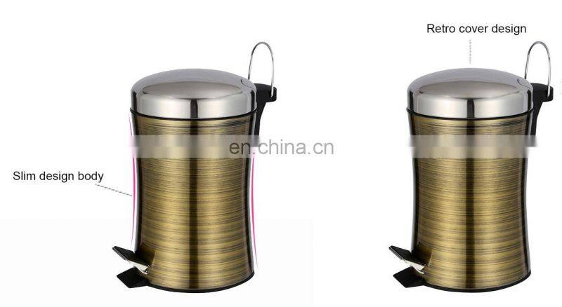 Hotel Slim Design Stainless Steel Foot Pedal Waste Bin With Gold Color Bathroom Trash Can