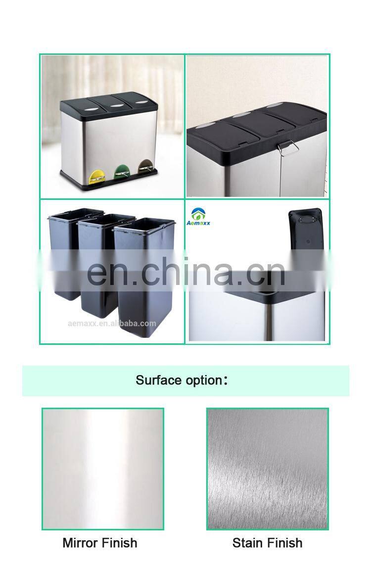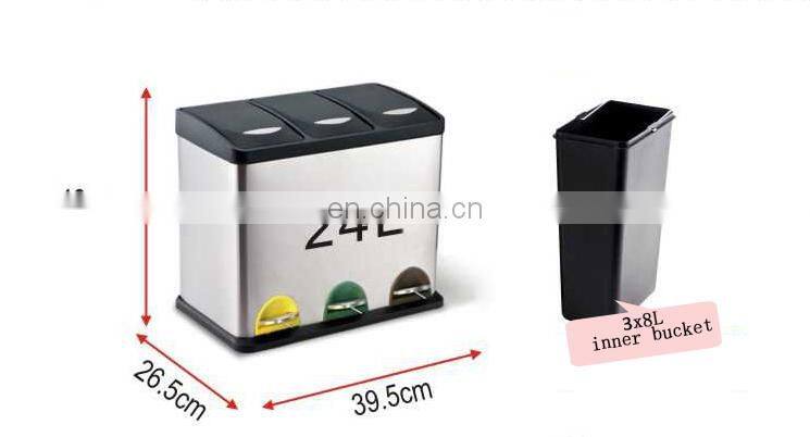 24L 3-compartment pedal bin | Stainless steel 410 + ABS | 46x26.5x39.5Hcm | white box | 2 | 1000 |