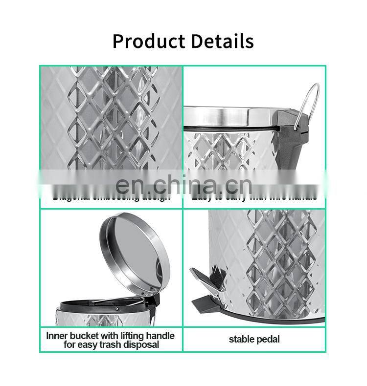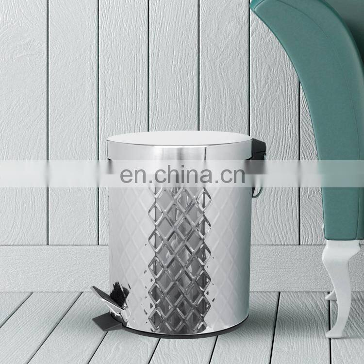 Popular Special Pattern Design Trash Can Embossing Surface Dust_Bin Bathroom Hotel Luxury Household Stainless Stee LTrash Bin