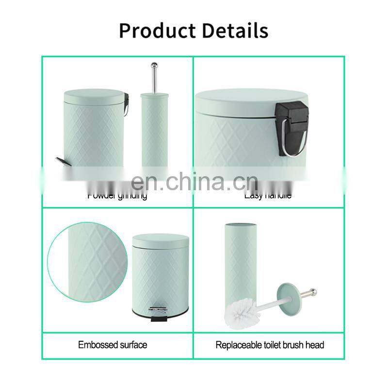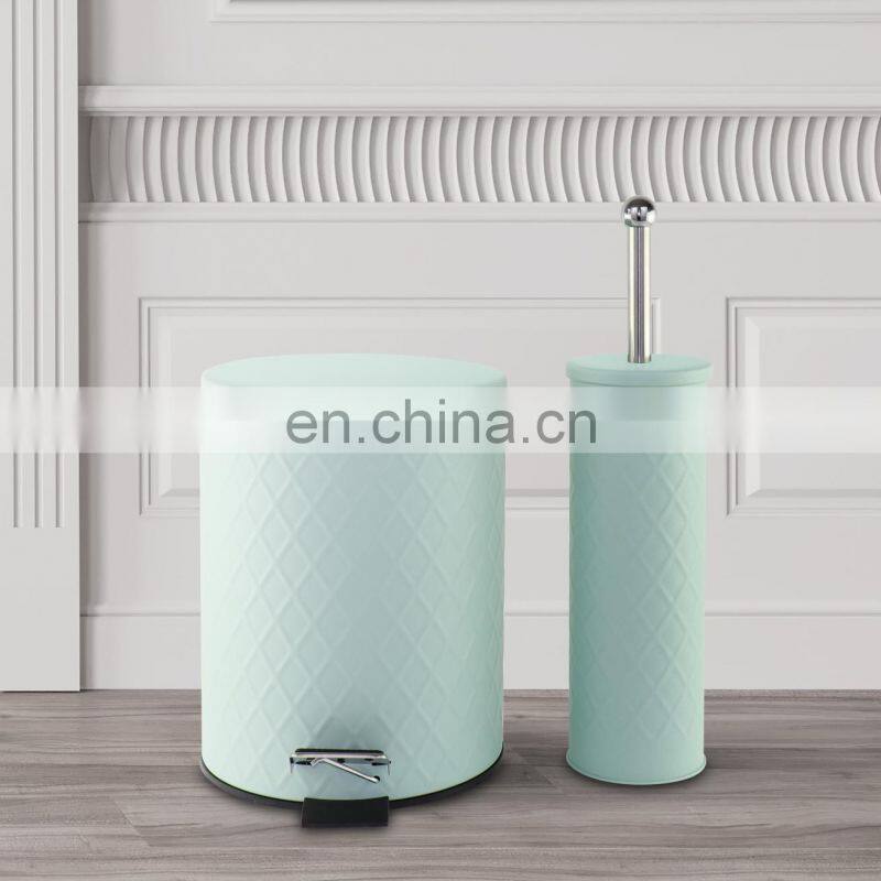 3L/5L/12L Embossed Pedal Bin With Toilet Brush Holder Bathroom Accessories 2 Pieces Set Stainless Steel Waste Bin