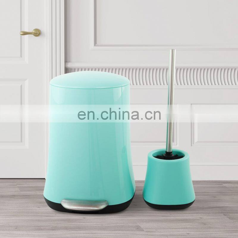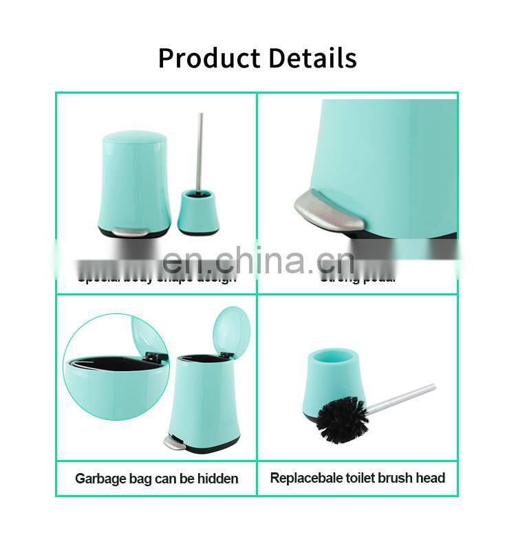 5L Plastic Pedal Waste Bin Office Stationery Plastic Paper Waste Bin Bathroom Foot Pedal Bin With Toilet Brush Set