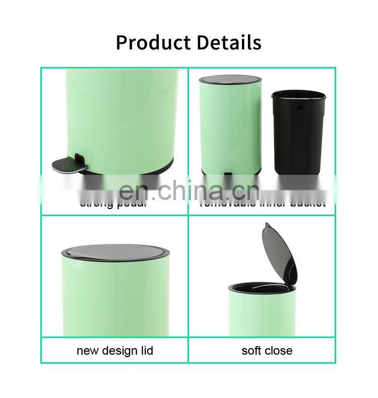 Color Powder Coating New Design Trash Can Lid Cover Soft Close Pedal Bin Hotel Waste Bin