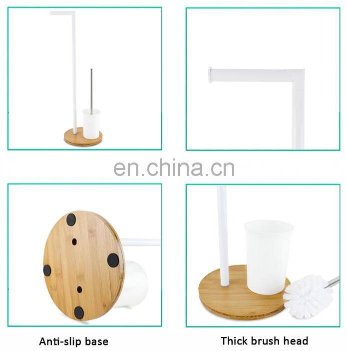 Bamboo Stand Toilet Paper Holder Bathroom Stainless Steel pp Freestanding Wood
