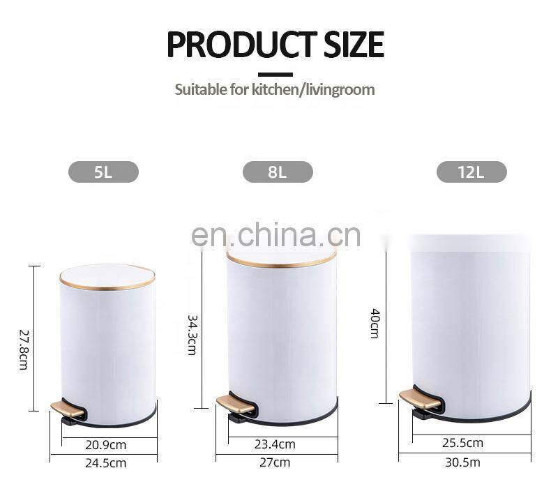 Hot Sale Luxury Colorful Household Office Stainless Steel Pedal Bin With Soft Close