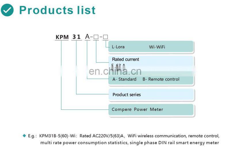 KPM31A | IUCosφ kWkvarkWhkvarhf;Multi-rate statistics, historical electricity statistics | / | RS485/WIFI | Din rail | ||||