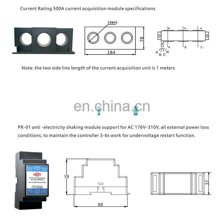 Monitoring functions: 3 phase current, A phase voltage, active power, reactive power, power factor, frequency, active energy, work energy, grounding current, leakage current, 4 ~ 20mA analog input, heat capacity;