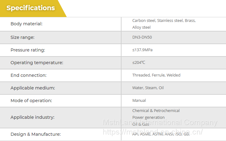 MstnLand's series of instrument check valve is mainly used to avoids the media flow in the opposite direction.