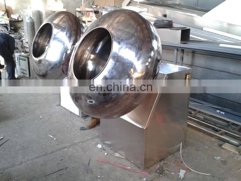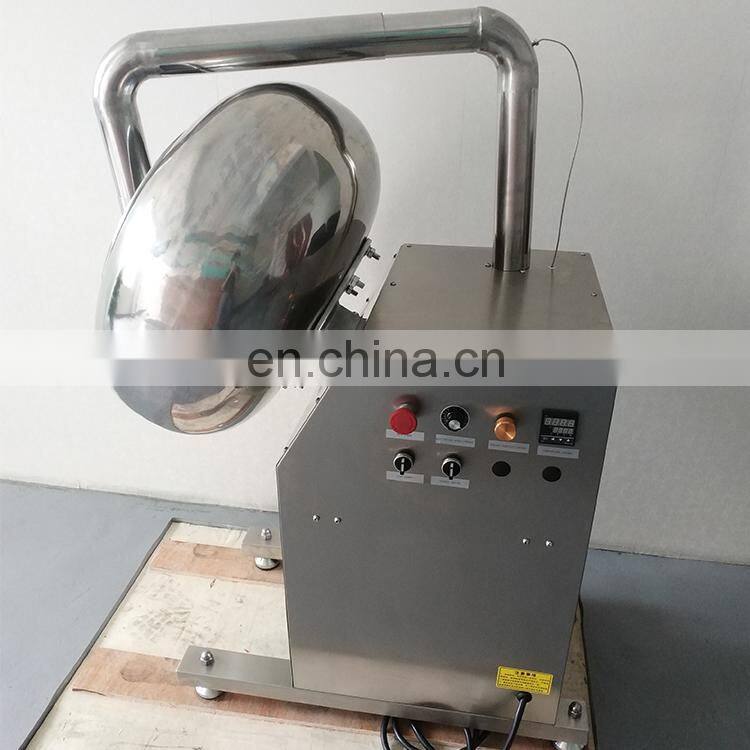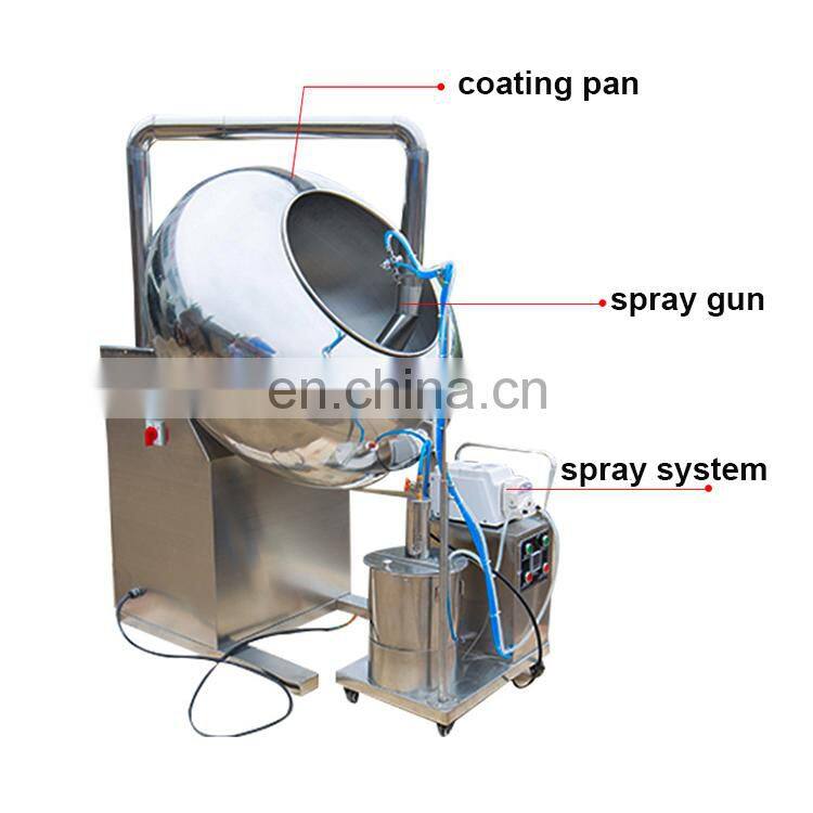the sugar coating pot tilts the Angle 30 degrees, the pot may place the electric stove, the gas and so on direct heating equipment. A separate electric blower is attached at random. The air outlet pipe can be heated or cooled by blowing into the pot. The quantity of heat can also be adjusted.